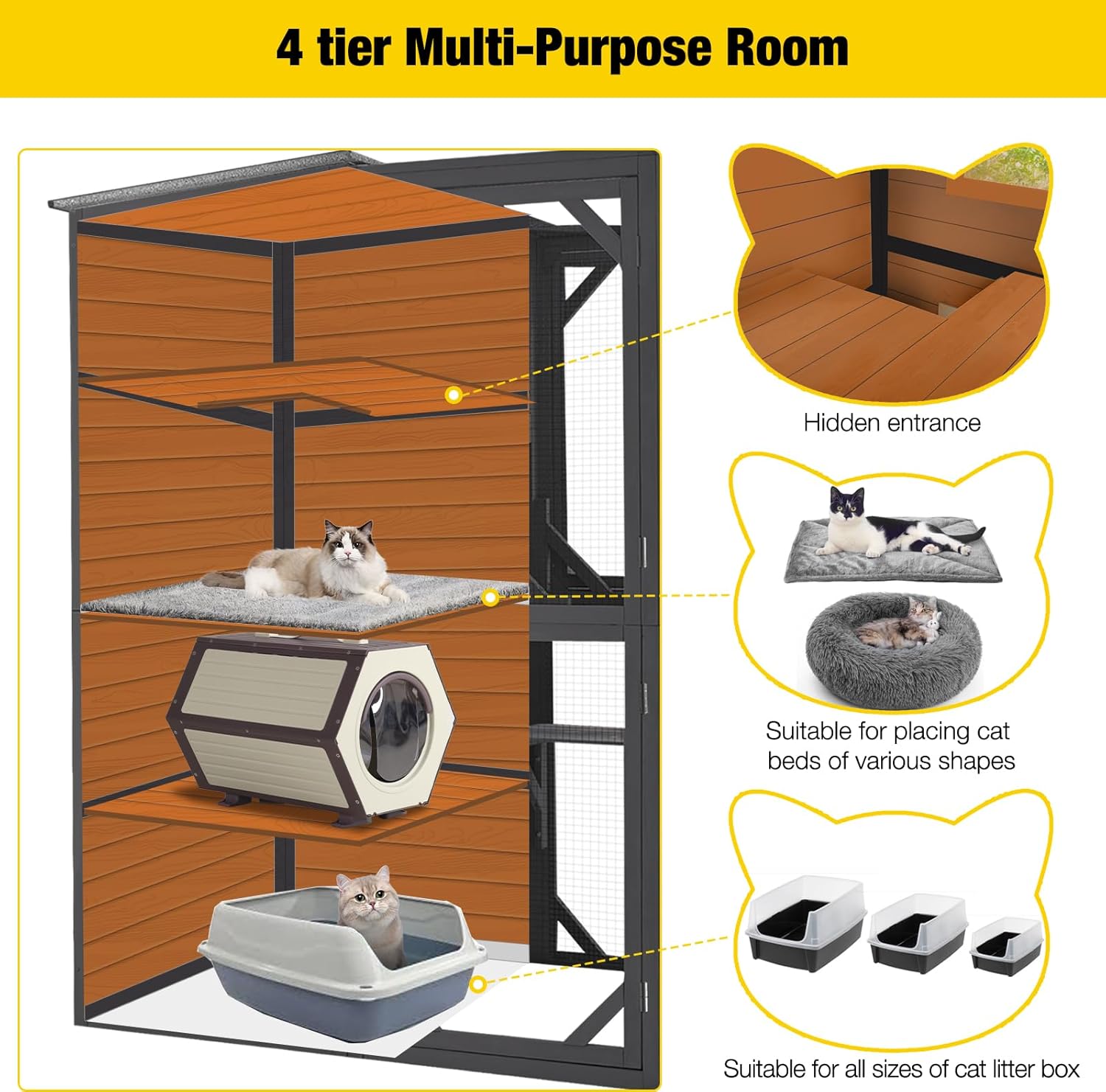 - Weatherproof roof �� keeps cats dry and shaded in any weather