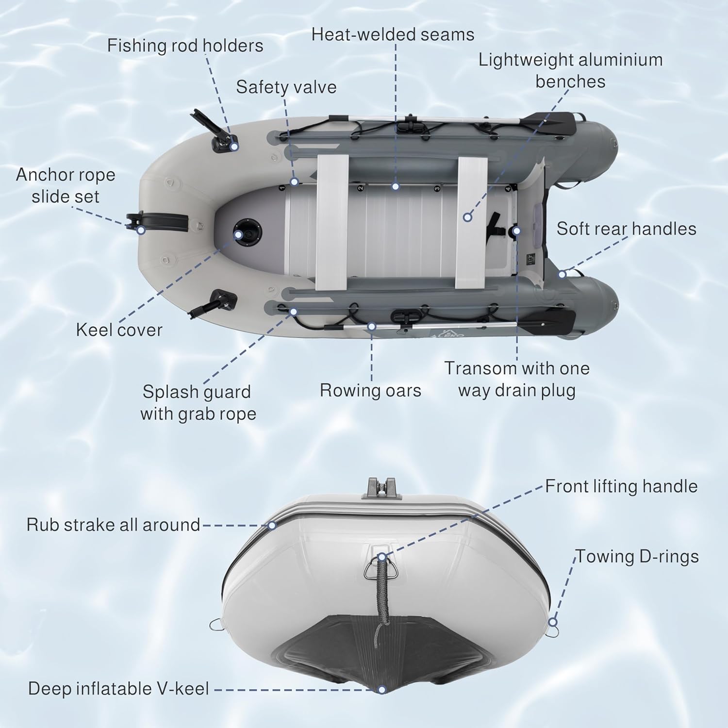• Inflatable Boat | Yacht Dinghy Tender Raft | Multi Person Fishing Boat | Aluminum Floor Oars | Fishing Rod Holders | Heavy-Duty PVC | 2024 Model |