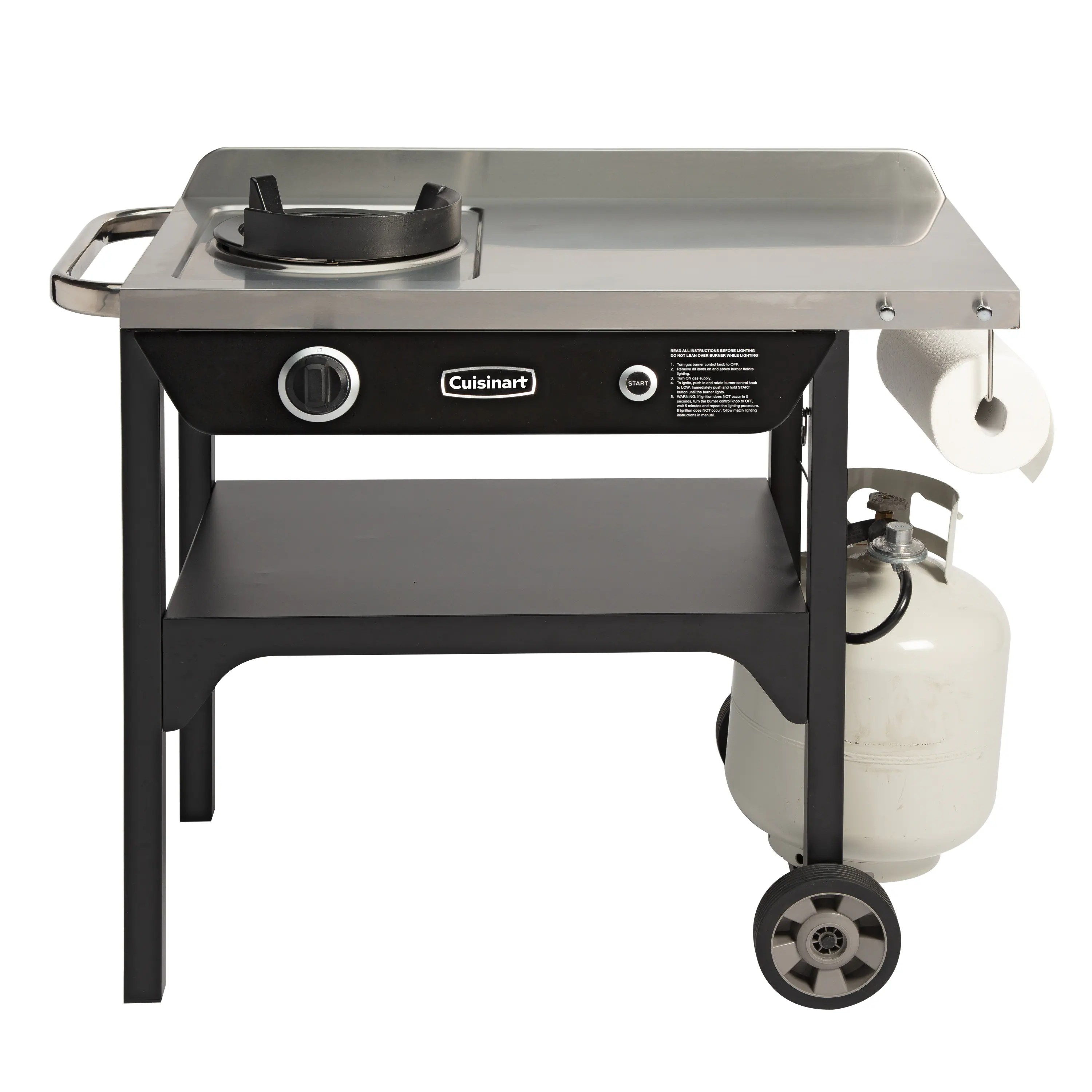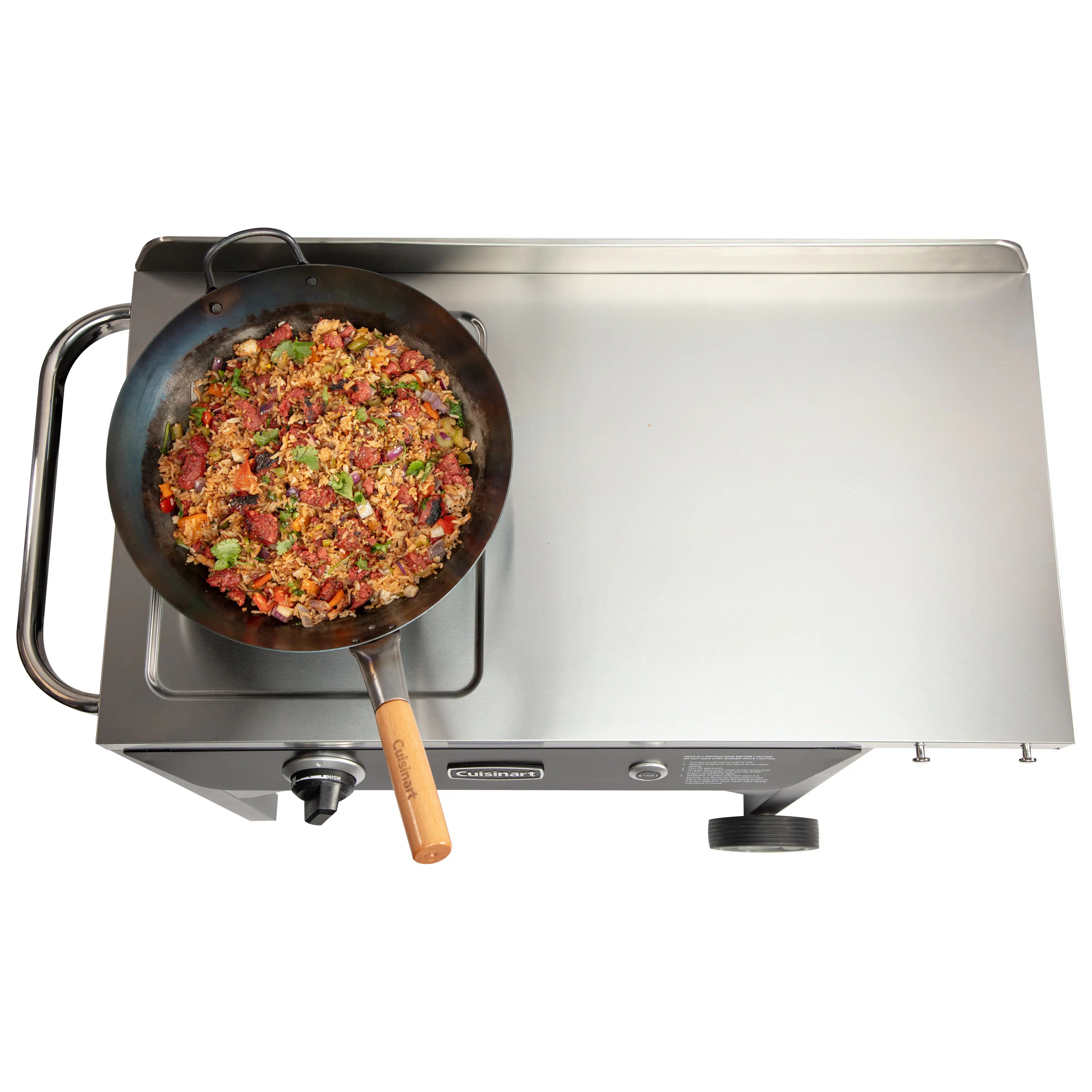 Cuisinart Outdoor Wok Station, 50,000 BTU Propane Outdoor Wok Burner w Prep Table, 14锟芥�锟斤拷 Carbon Steel Wok for Stir Fry, Searing, BBQ 锟斤拷 Black
