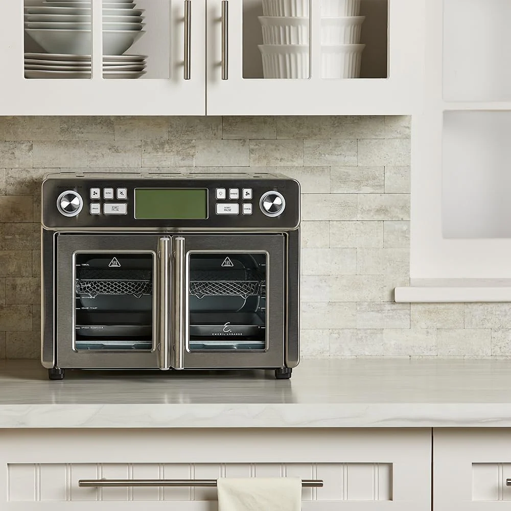 • Emeril Lagasse Dual Zone 360 Air Fryer Oven Combo with French Door, 25 QT Extra Large, Cook Two Foods in Different Ways, Up to 60% Faster from Frozen to Finish