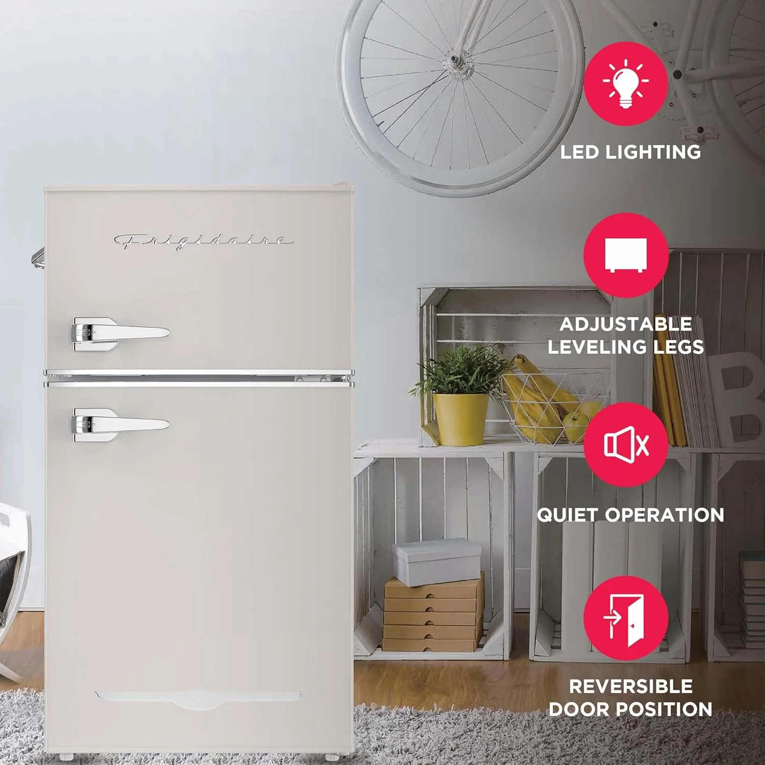 Frigidaire Retro Mini Fridge with Freezer & Side Bottle Opener-Small 2 Door Refrigerator for Office Bar or College Dorm Room-3.1 Cu Ft – 19”"D x 20.5" W x 33.5" H