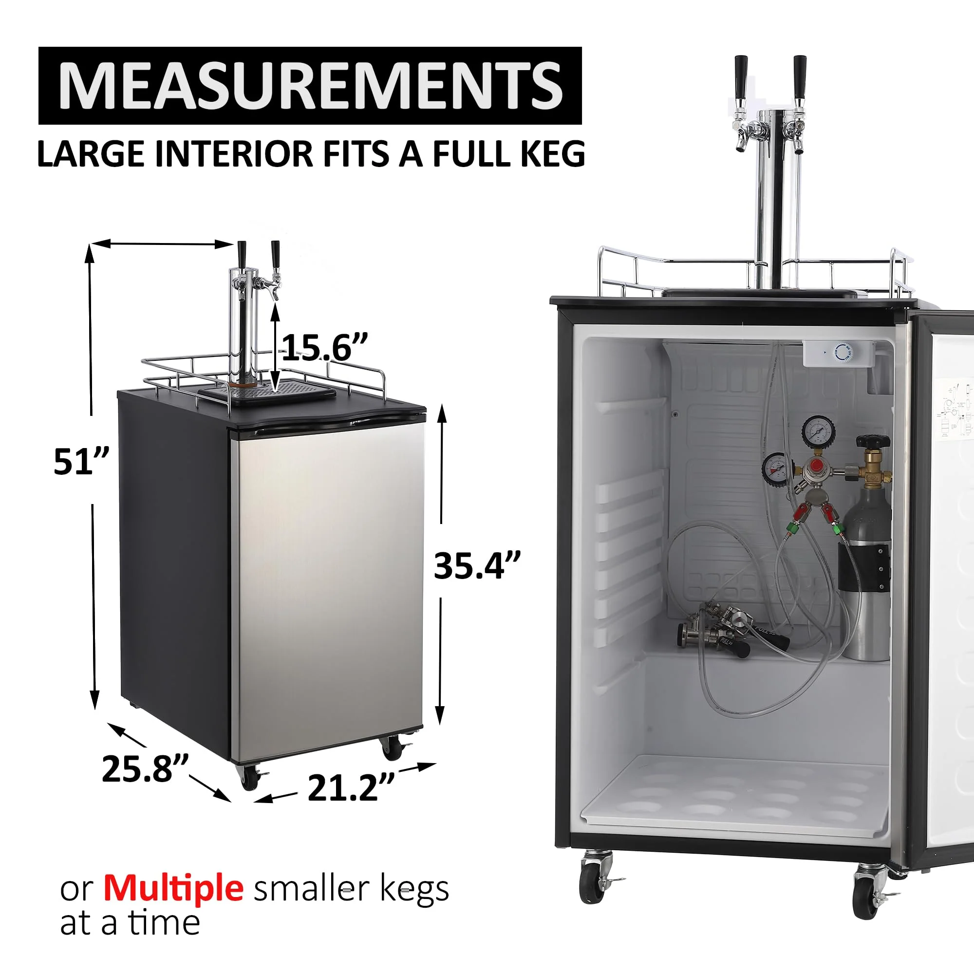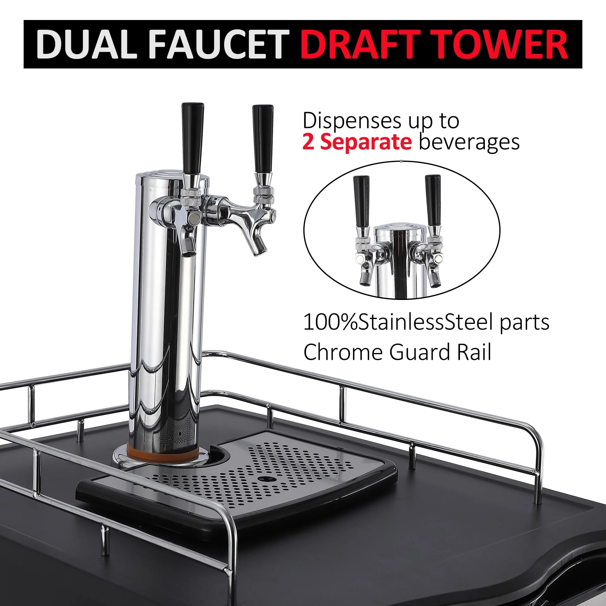- Dual tap draft system — serve two beers simultaneously
