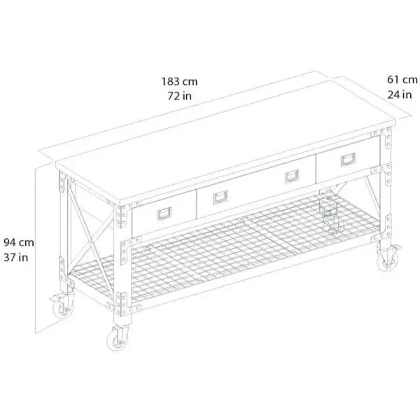 Building Products 72 in. 3-Drawers Rolling Industrial Workbench and Wood Top