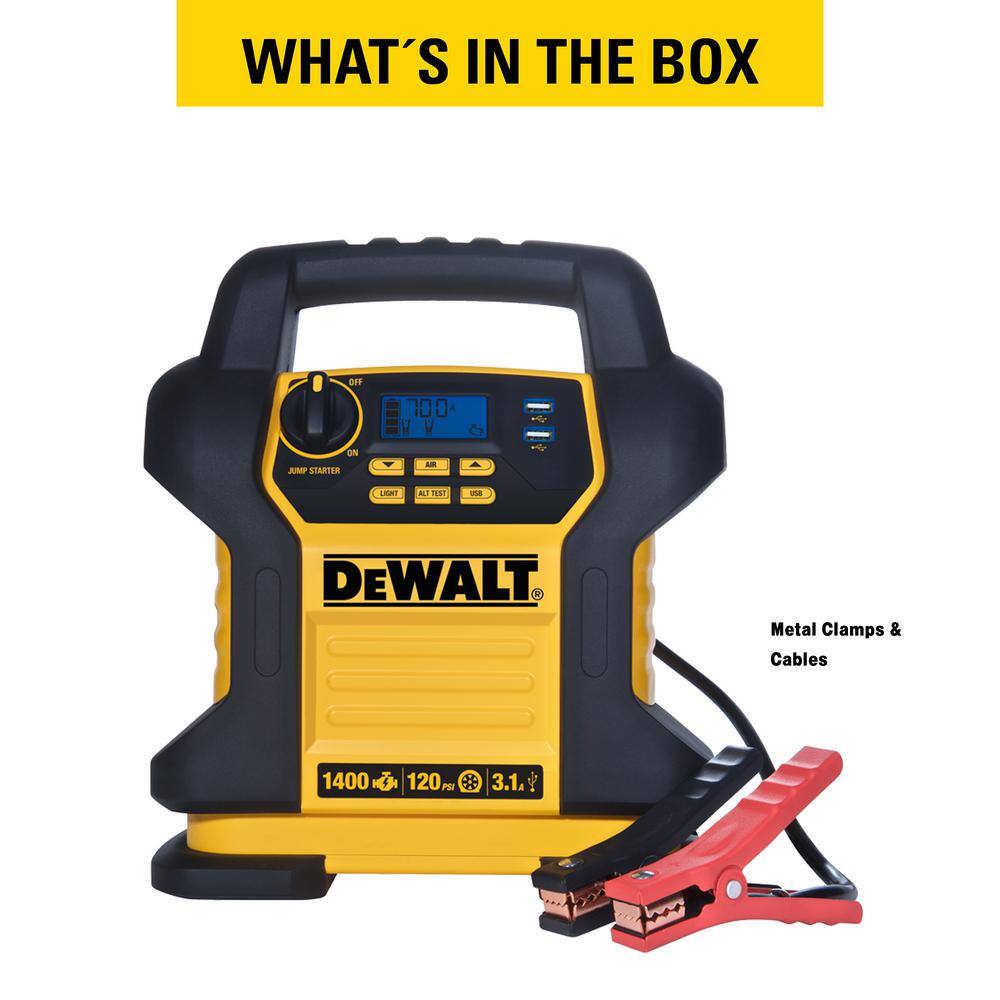 DW 1400 Peak Amp Portable Car Jump Starter with Digital Compressor